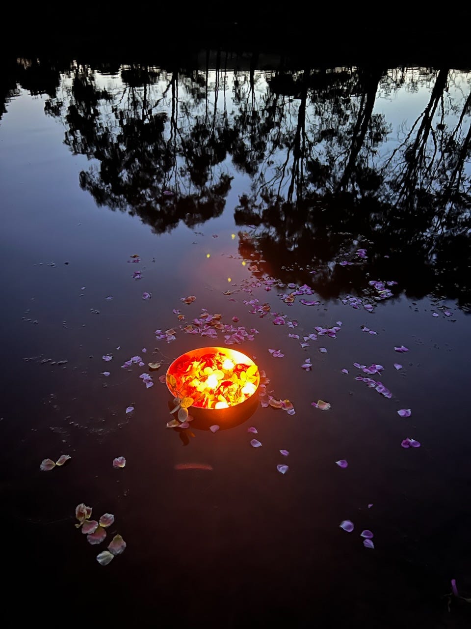 When I set my bowl of flame afloat it was to honour ancestors and lost friends, and this year also as an acknowledgment of the innocent lives still being brutally destroyed by war. Humanity learns too well from historical atrocities; simply making more effective killing and maiming devices and finding more excuses to use them so that more people can profit from inflicting misery. Killing children and bombing hospitals and cutting off food, water and other essential supplies from civilian populations is wrong. Besides inflicting unfathomable miseries of death, maiming and displacement all that is achieved by the Russian invasion of Ukraine, the brutal Hamas raid of October 7 and the horrific retaliation of the Israeli government (not to mention the things going on in Africa about which I am less well-informed) is a vast increase in the profits of arms manufacturers who supply these situations. What do they do with all this money? You can’t eat it, sleep on it or rub it in. It doesn’t smell nice. These days most of the stuff is never even seen, just a series of figures chewed back and forth between electronic devices.